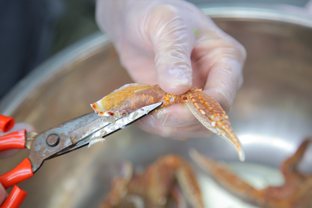 扁蟹又稱梭子蟹,主要生活在沙泥底質或礁岩海底,雖體型不大,但蟹肉相當飽滿扎實。每年產季時變得肥美的扁蟹,是澎湖不能錯過的美味之一。
