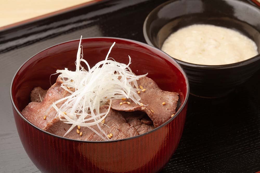 3. 將牛舌及蒜片鋪在熱騰騰的白飯上,灑上蔥花,搭配柚子胡椒或檸檬醬油提味,就是一碗香氣十足的牛舌丼飯。