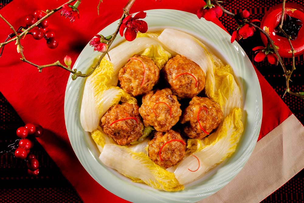 將獅子頭稍微煎至表面定型後,加入高湯與白菜,小火燉煮至入味即可上桌。湯頭清甜、肉質鮮嫩,非常適合作為年節、家庭聚餐或宴客時的暖心主菜。