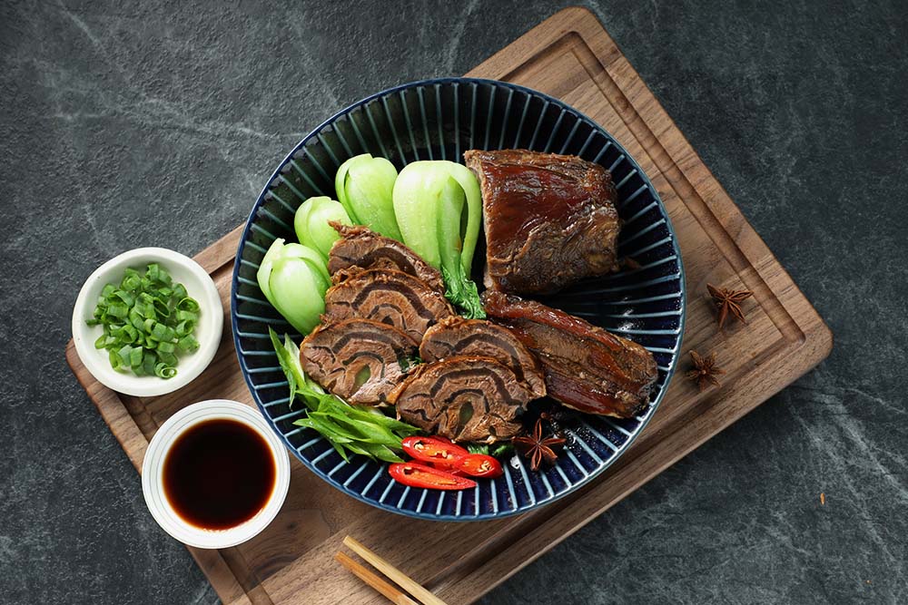 嚴選天然放牧的巴拉圭牛,取自運動量充足的腱子心部位,肉質低脂、低熱量、筋紋細緻、富含膠質,口感層次分明。以 15 種以上天然香料低溫慢滷,風味滲入肉中。解凍切片冷食或稍微復熱,仍保有半筋半肉彈牙口感與濃郁肉香,是一道耐吃、越嚼越香的經典滷味!