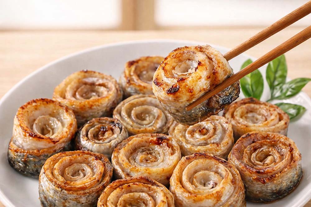選用台灣新鮮白帶魚,經人工去骨去刺後保留完整魚肉,再細心捲製成捲花造型,不僅美觀,也大幅提升料理便利性。白帶魚肉質柔嫩綿密、腥味低,富含 DHA、EPA 等營養成分,低脂低熱量,清爽無負擔,簡單料理就能呈現魚肉本身的鮮甜風味。