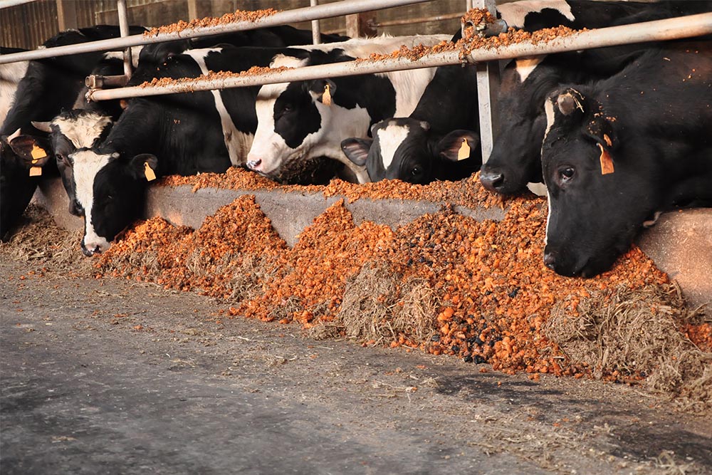 3.飼料:與農會合作,收購在地賣相較差或準備丟棄的農廢物,除了不浪費資源,也讓紅蘿蔔、馬鈴薯、酒糟、牧草搖身成為最天然的飼料。再以專業控管精料配方餵養,飼養出肉質優良的牛群。