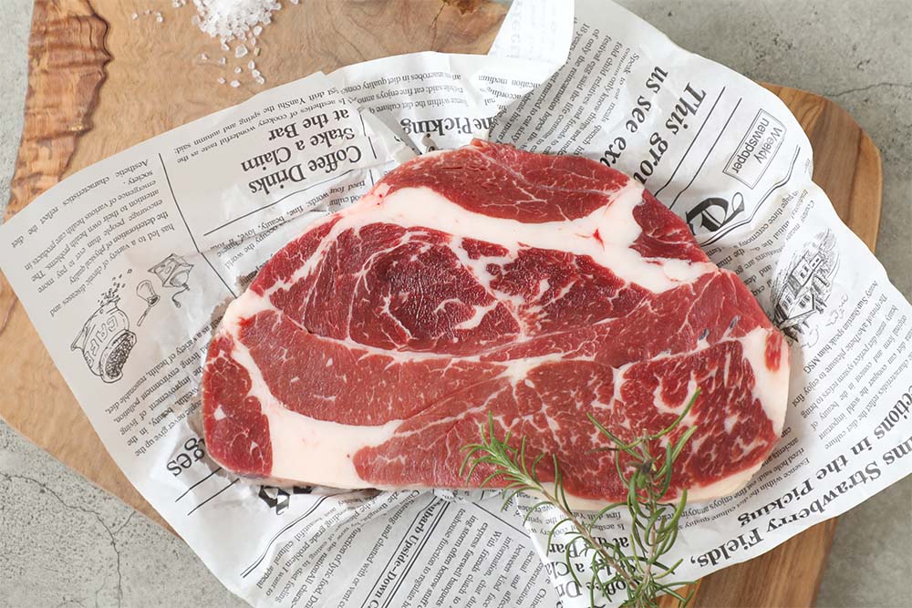 美國CAB嫩肩沙朗牛排取自牛肩胛部位,橫切面切開的牛排猶如雪花般的油花分佈是最明顯的特徵。