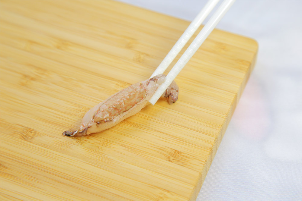 1. 蟹腿肉流水解凍後,稍微將表面以餐巾紙擦乾