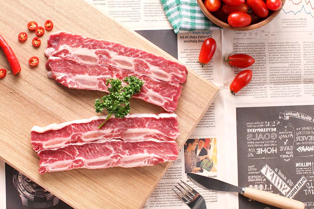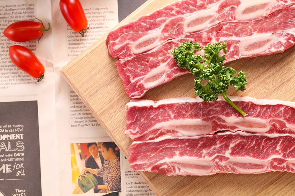 帶骨牛小排取自牛肋脊部位,精選牛第6~8根肋骨,油花豐富、口感扎實、鮮嫩多汁,非常適合燒烤或是煎烤。將骨頭旁邊的筋膜煎到焦香、直接用手拿起來啃,超過癮!