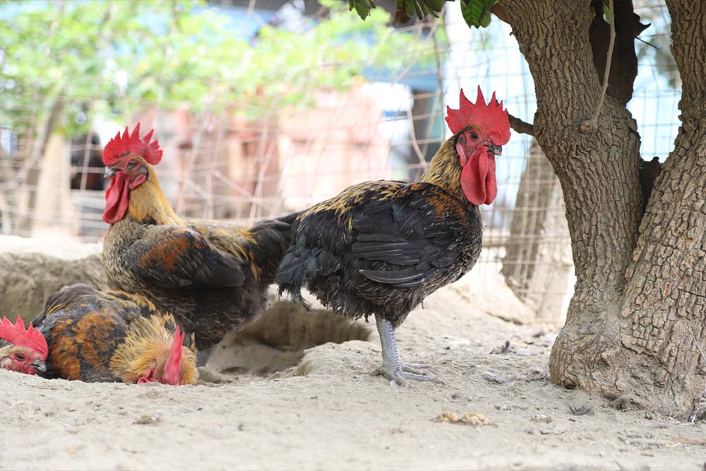 人道飼養黃金土雞,牧場一改集約式飼養的傳統方式,重新規劃大範圍的露天放養空間,讓雞隻可活潑又健康地自由奔跑,甚至還能看到雞隻在牧場洗「沙浴澡」。除了餵養天然穀物外,也添加富含omega-3不飽和脂肪酸的亞麻籽,做為動物成長的優良營養飼料。