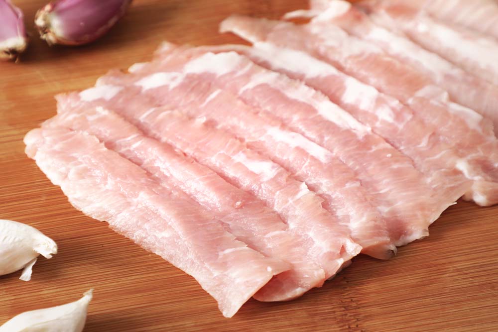 切片的松阪豬油花豐富,超過210天自然熟成,肉質甜脆嫩口有嚼勁、油脂甘甜不膩。適合乾煎、燒烤、涮涮鍋、快炒、丼飯等多種料理。