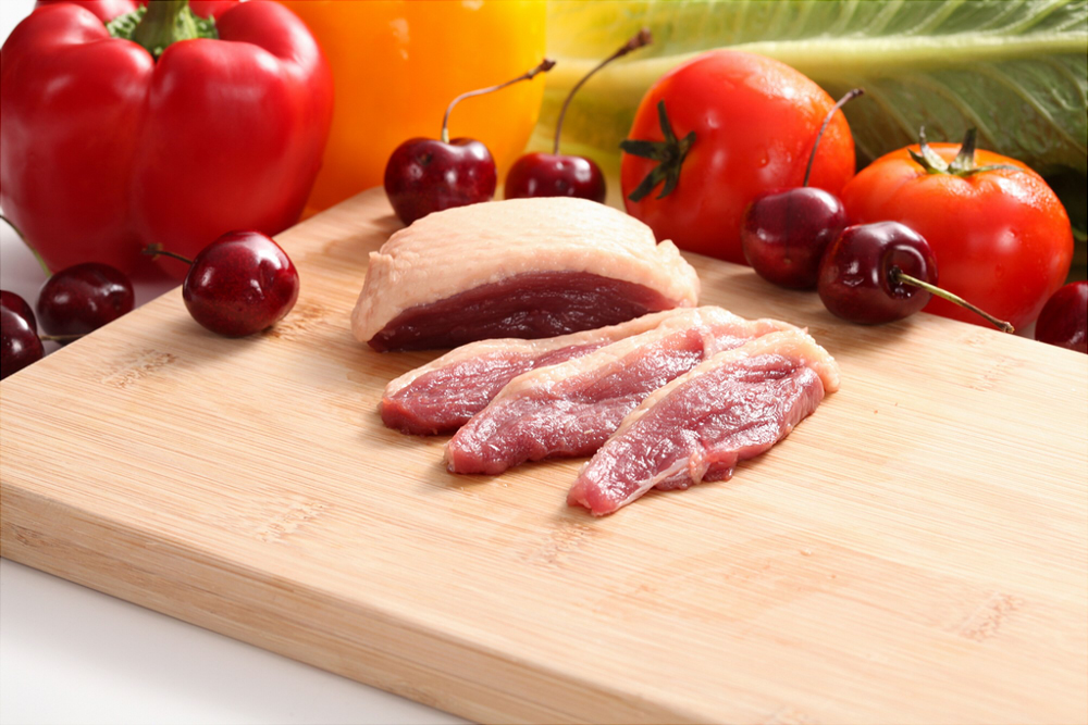 櫻桃鴨胸外皮色澤猶如玫瑰金般亮麗,肉色如同櫻桃紅般綻放,肉質更是鮮嫩扎實,咀嚼起來多汁、甜潤、有彈性,無一般鴨肉的腥味,大口咬下肉香在嘴邊徘徊不已唇齒留香!