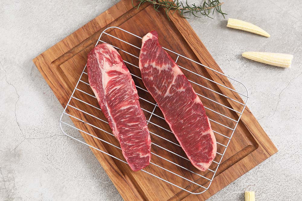 羽下牛排為牛肩胛中相對較軟嫩的部位,風味清爽、少油膩,肉質自然有嚼感、與無骨牛小排相似,適合煎烤或燒烤,越嚼越香越好吃!