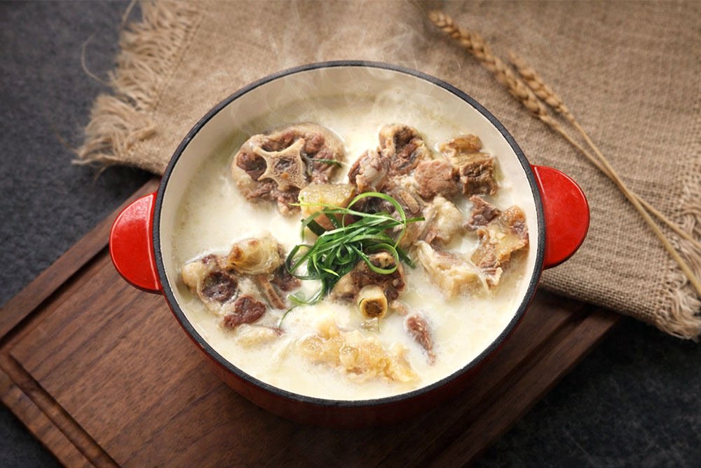 選用草飼牛肉,搭配牛腱、牛尾與牛筋慢火熬煮,不添加增味劑,成分單純。長時間燉煮釋放膠質,湯頭溫潤順口、層次扎實。以洋蔥、白蘿蔔清甜為基底,加入全脂奶粉燉煮,湯色乳白、奶香柔和,濃郁卻不厚重,冷冷的天來一碗超暖胃~