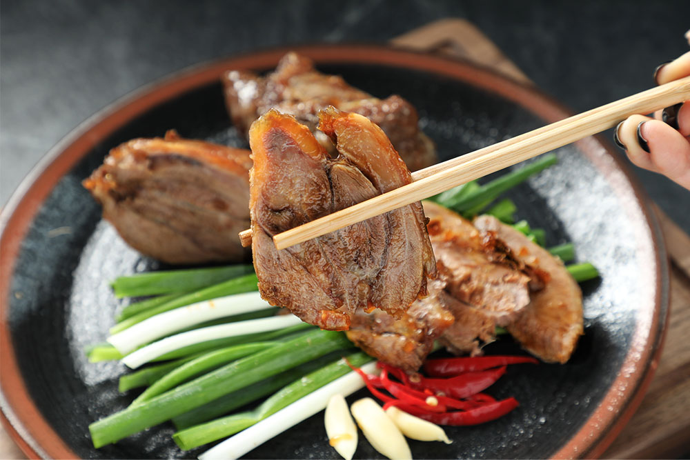 調味上不添加防腐劑與化學香精,改以白芷、砂仁、小茴等天然漢方慢滷,鎖住豬肉最原始的鮮甜。冷食清爽、復熱後散發淡淡芝麻香油與米酒香氣,無論是家常料理或年節團圓飯,都能輕鬆上桌,為餐桌增添溫暖好滋味。