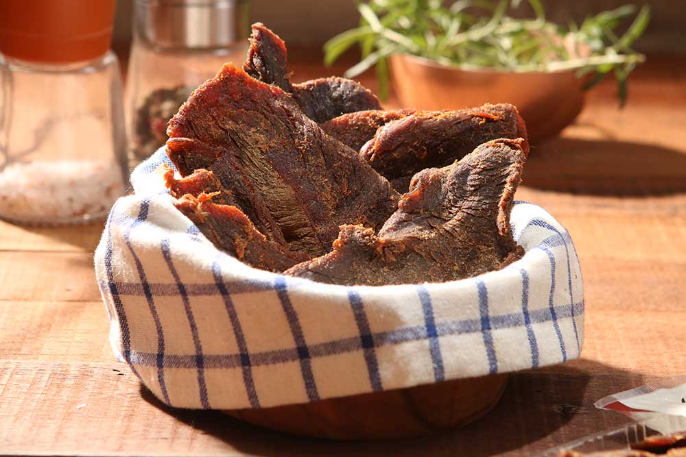 在富有彈性的肉質裡加入用辣椒、肉桂、八角、胡椒研磨出的香氣,再加上使用100% 純釀造發酵工法、經過4-6個月發酵期、獨家菌種分解的醬油,創造最自然跟古早的風味…一口咬下後,蘊含的豐富肉汁與誘人牛肉風味同時在口中溢開,喜歡傳統濃厚風味牛肉乾的老饕們一定不能錯過!