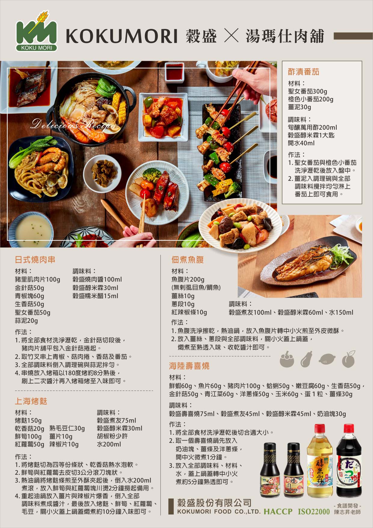 適用滷味、烤、燒魚、蒸類等料理,能除去食物中的腥味,增加食物亮麗的光澤,將最原味、自然的美味散發出來。