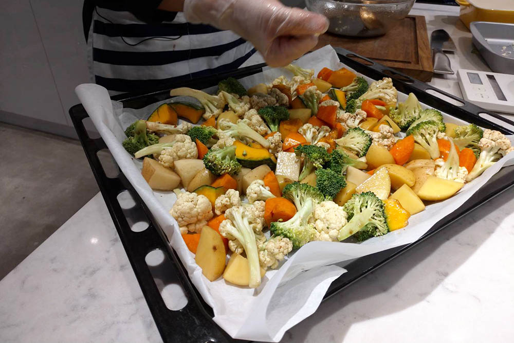 1.將處理好的綜合蔬菜,拌入鹽、黑胡椒、巴薩米克醋、橄欖油,放入預200度的烤箱烘烤30分鐘即可。