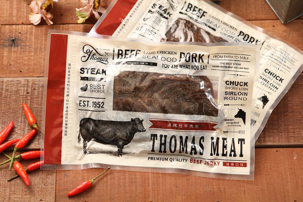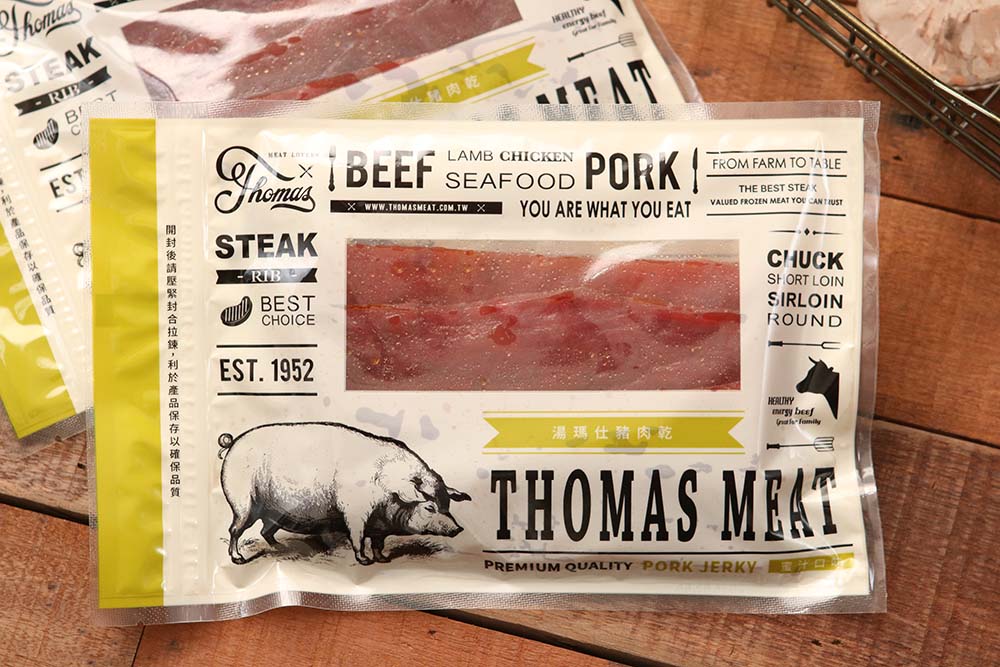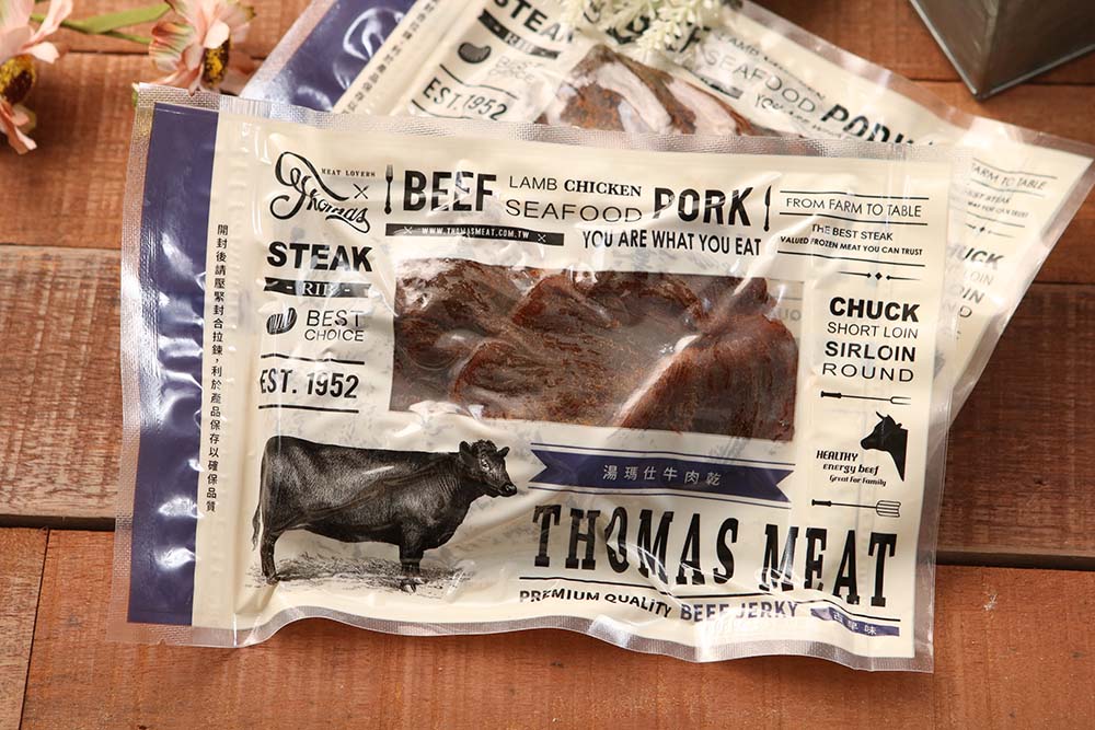 湯瑪仕為了確保肉質的新鮮度,食材我們採用專業屠宰場當天現宰的健康豬隻/進口牛肉,製作過程遵循傳統古早配方低溫醃製一週,讓醬汁仔細滲入肉品每一寸纖維後,再用高達200度的溫度烘烤,保留了肉品甘甜厚實的美味,牢牢將美味鎖住在肉乾中!