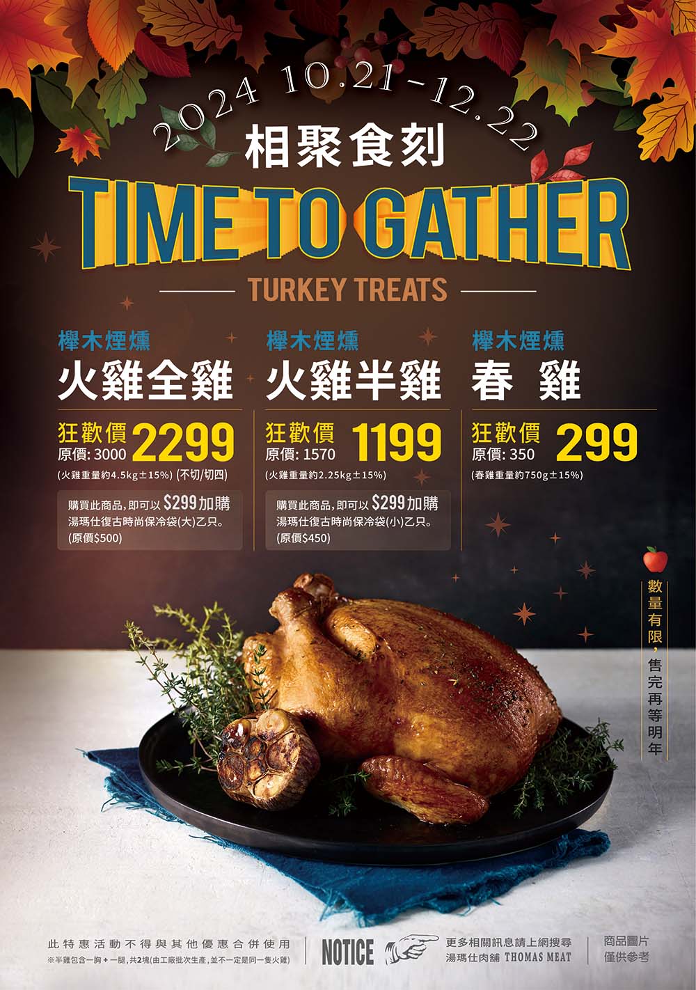 感謝大家支持、2024年煙燻火雞&春雞&生鮮火雞皆已完售!讓我們期待明年再見~每年約10月中下旬開放訂購,數量有限、歡迎LINE私訊留下聯絡方式預約明年到貨通知喔!
