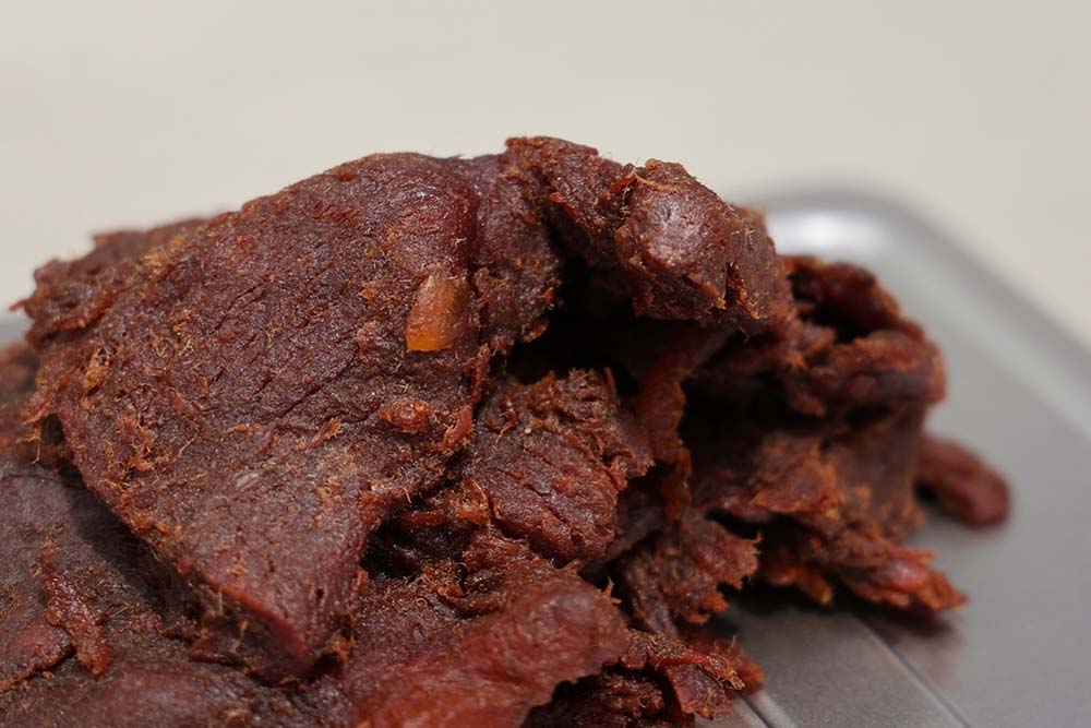 精選澳洲M8~M9等級純黑和牛肩胛部肉品,大理石油花綻放,肉質軟嫩多汁。以獨家私房配方慢工細火焙炒4小時,再以200度遠紅外線烘烤機烘烤、鎖住精華。豐富肉汁與誘人的牛肉香氣,在咬下的瞬間奔放。