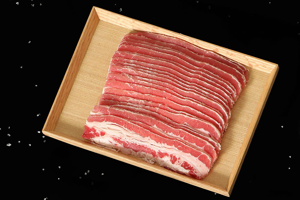 雪花培根牛肉片取自牛的胸腹肉,俗稱「牛五花」,瘦肉中帶有油脂讓吃起來的口感不柴不膩,軟嫩的肉質除了適合拿來烤肉,也可用來涮鍋或做成香嫩滑口的牛肉丼飯。