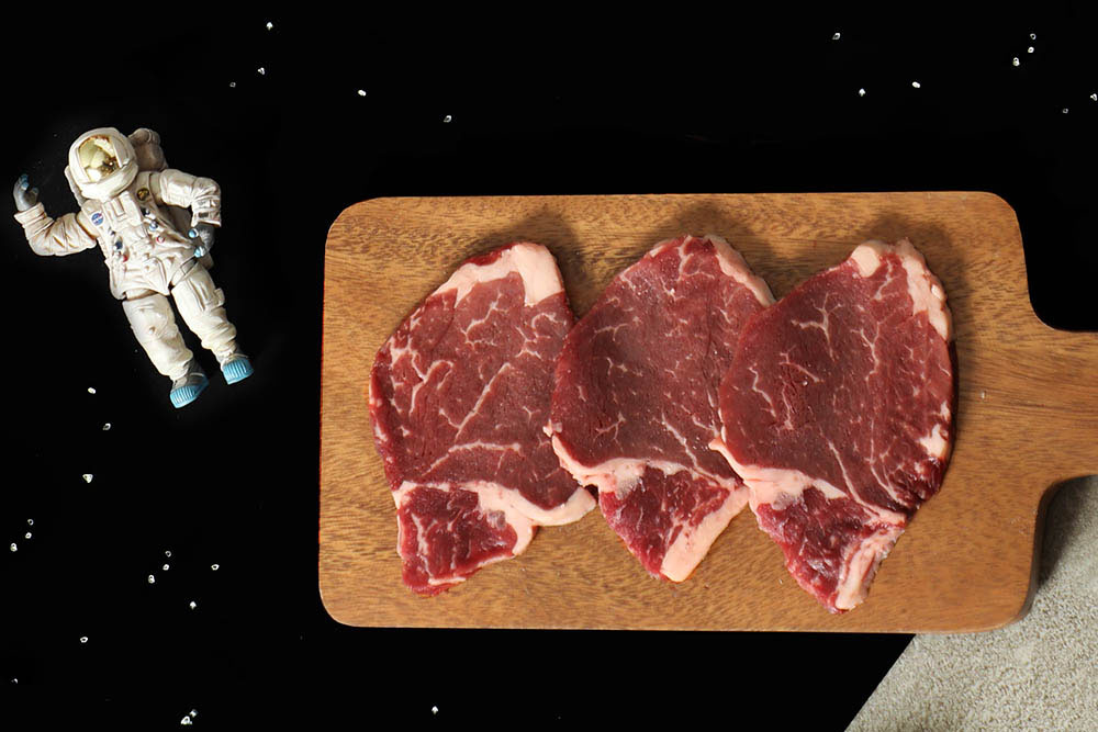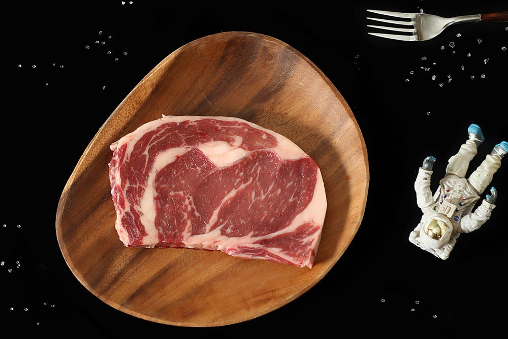精選6-12根肋骨位置的Prime頂級美國牛肉,取自30月齡以下的年輕屠體,大理石油花多、分布均勻,肉質軟嫩,中心會有一圈類似眼睛的油脂部位,在煎烤後發出陣陣香氣,是許多人熟知而且熱愛的部位,5~7分熟是不少老饕經驗推薦。