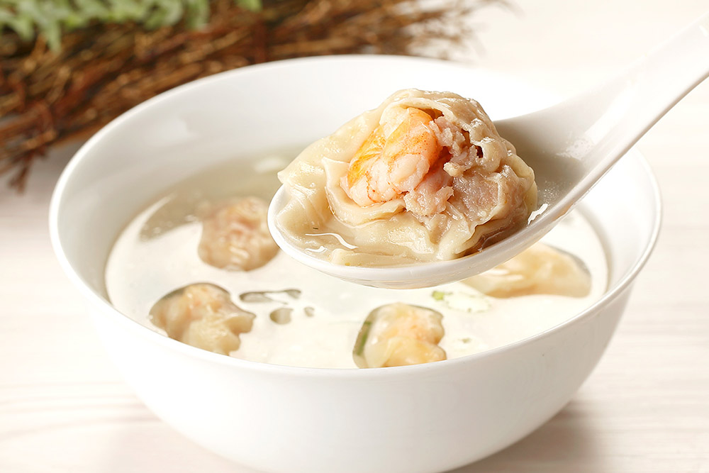 精選無藥水泡發的整顆大蝦仁,加上鮮味十足的蝦泥與鮮甜絞肉,選用高級港式雲吞皮,純手工捏製,皮薄卻不易煮爛,彈牙口感層次豐富,以香濃清甜的懷舊古早味油蔥湯底,襯托鮮蝦雲吞的美味~