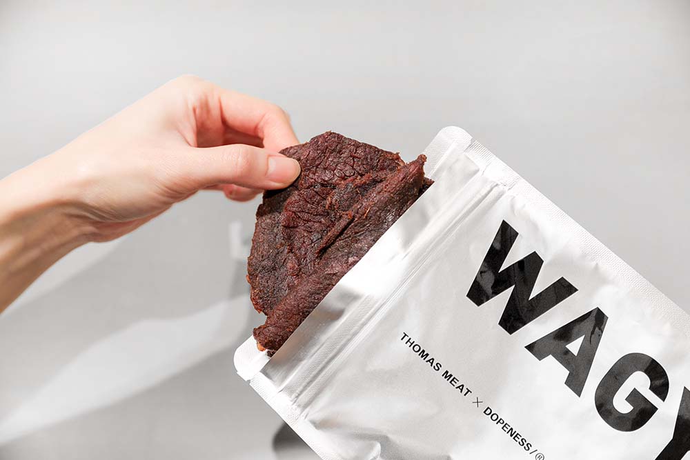 此次湯瑪仕肉舖與DOPENESS ART LAB聯手體現『食』的美學!包裝設計皆由其操刀,最chill的時尚精緻包裝,吃肉乾也可以吃得很fashion!